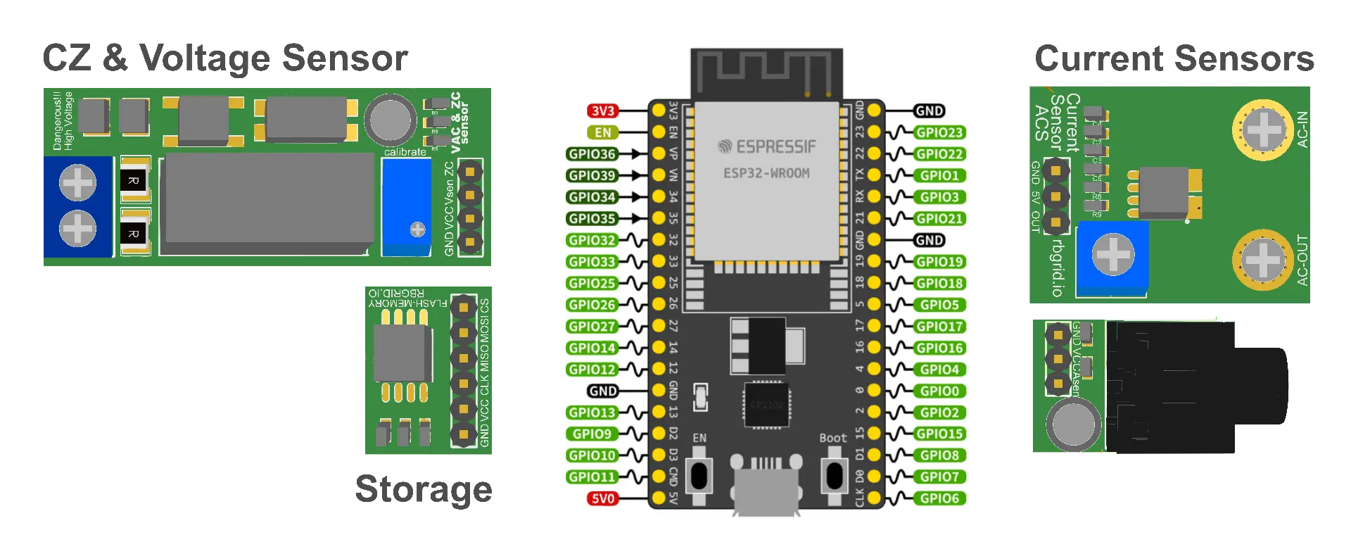 Connect, configure and update sensors and modules with ease: Current sensors SCT-013, ACS-712, Voltage Sensors ZMPT, Zero-Cross sensor.